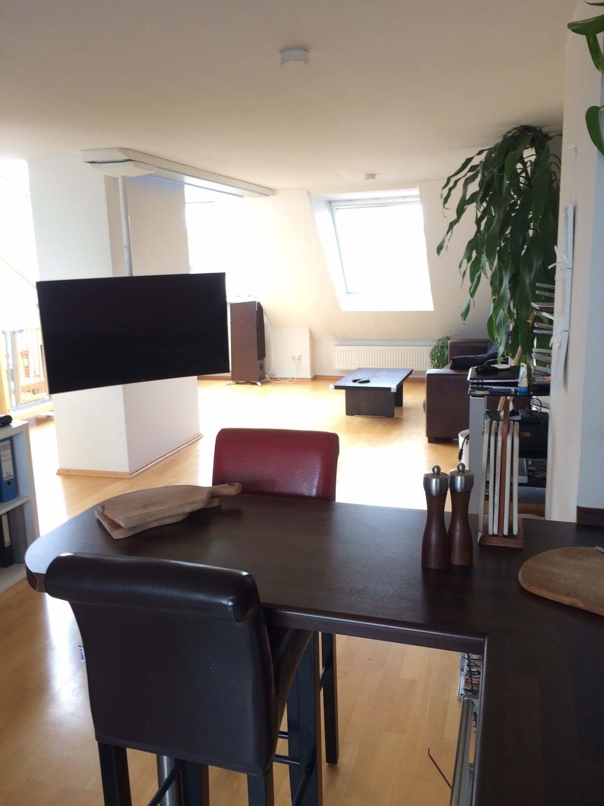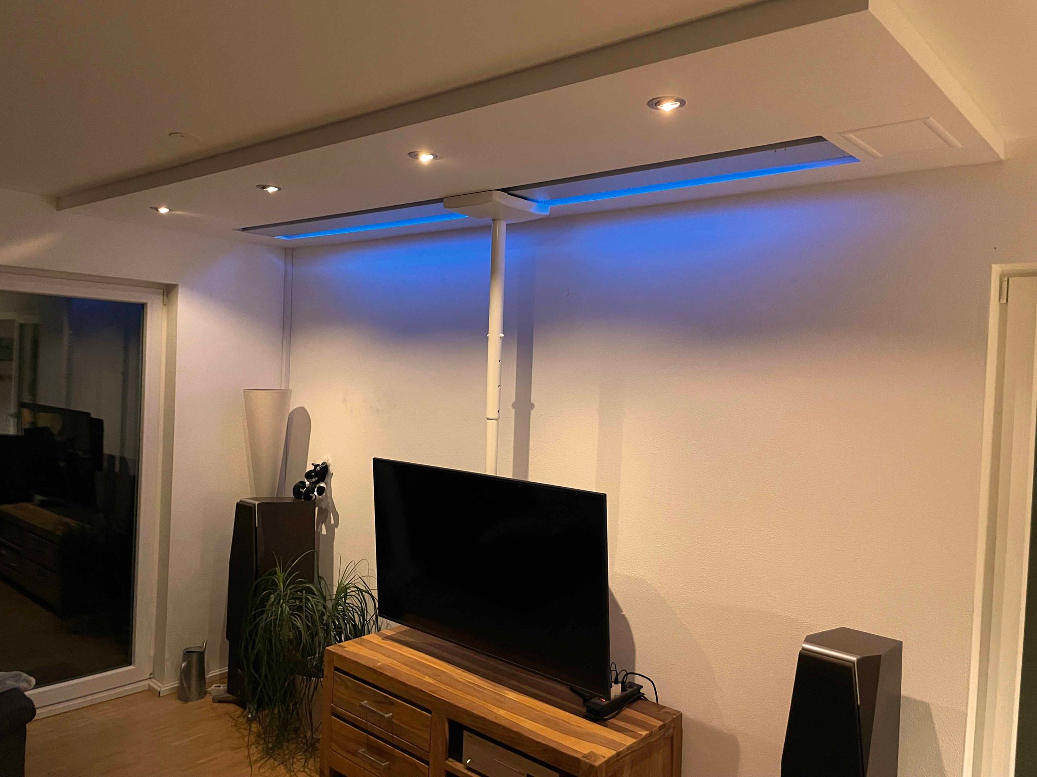 "Met de op afstand bediende verlichting ziet de onder het plafond zwevende tv er absoluut futuristisch uit en is het hoogtepunt in ons huis."