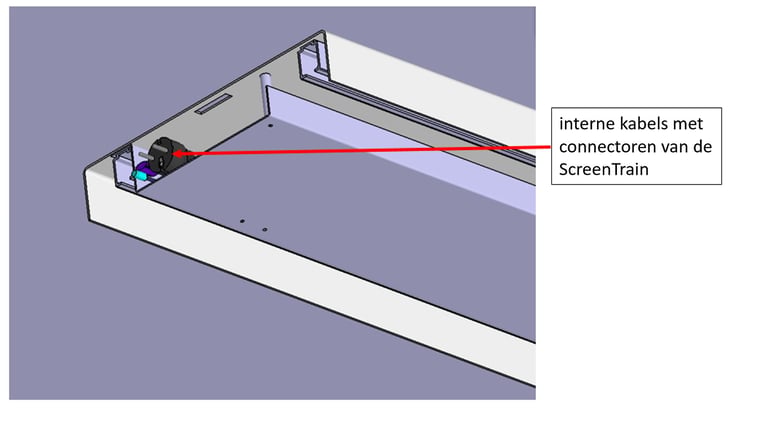 De interne aansluitingen voor de kabeldoorvoeren naar de ScreenTrain bevinden zich aan de voorzijde van de ScreenTrain onder het zijdeksel